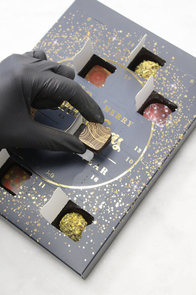 Each window contains 1 of our delicious chocolate treats. Flavours include: Biscoff truffles, pistachio praline, chocolate candy cane and caramel marshmallow!
